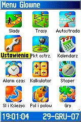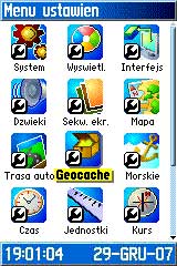 Na ekranie Ustawień Geocache możemy zmienić domyślne ikonki dla skarbów geocache przed i po ich odnalezieniu. Mamy też możliwość automatycznego umieszczania notatki w kalendarzu odbiornika w momencie odnalezienia skarbu. Jest to bardzo przydatne, gdy poszukujemy skrzynek np. podczas kilkudniowego urlopu, a wpisów w serwisie internetowym dokonujemy dopiero po powrocie.