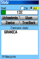 Większość ustawień dotyczących śladów można zmienić na ekranie "¦lady"