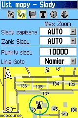 Domyślnie odbiornik ma ustawione 3000 punktów w śladzie aktywnym. Można zwiększyć ten limit do 10000 punktów. Zmiany tej dokonuje się jednak w "Ustawieniach mapy" w zakładce "¦lady" (Menu główne → Ustawienia → Mapa lub Ekran mapy → przycisk Menu → Ustawienia mapy).